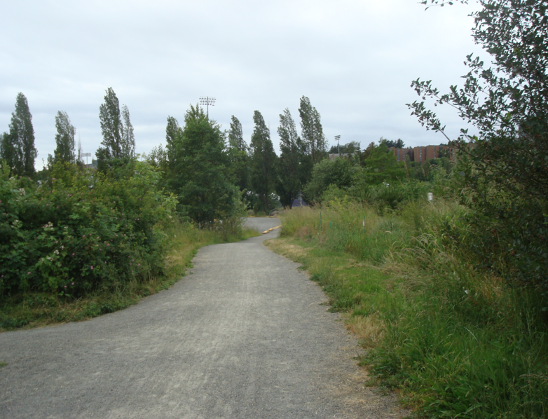 take a turn in the trail, you see water. It looks like the Union Bay area
